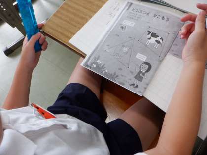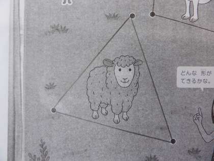 2年算数の学習です。絵の中の動物を、直線で囲んでいます。