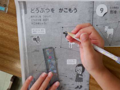 定規を使って思うように直線をひくことも、大切な学習です。