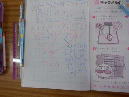 5+5で10を出し、たし算が簡単になるように工夫しています。