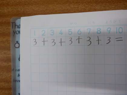 この人は、3のまとまりが5つあると考え、3を5回たす式を立てました。