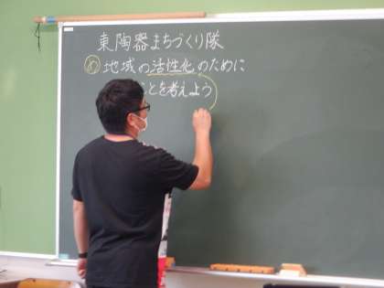 6年 総合 東陶器まちづくり隊 1 公開日 2023/09/13 更新日 2023/09/13 6年 6年総合的な学習の時間の学習です。6年生が「東陶器まちづくり隊」になって、自分たちにできる地域貢献をめざしています。ここは、「福祉」のグループです。