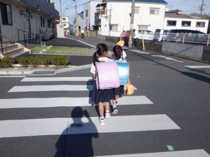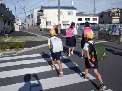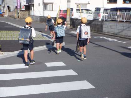 今朝の登校の様子です。日差しが強く暑さを感じますが、空気は比較的からっとしています。