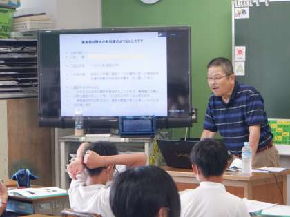 6年 総合 東陶器まちづくり隊 1 公開日 2023/09/14 更新日 2023/09/14 6年 6年総合的な学習の時間です。今日は各チームでゲストティーチャーをお招きし、お話を聞きました。「歴史」チームが校区の歴史についてのお話を聞いているところです。
