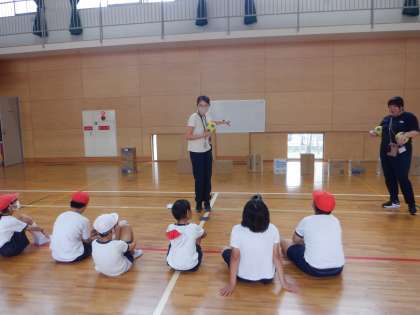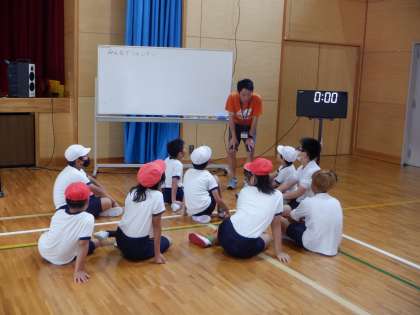 太陽学級の学習の様子です。体育館に設定した3つの場をローテーションしながら学びます。
