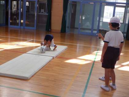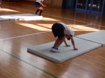 3年3組 体育 後転 7 公開日 2023/09/19 更新日 2023/09/19 3年 前転と後転とでは動き方は違いますが、前転の学習を通して、「回る」という自分の動きをコントロールする力もついてきました。