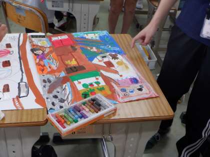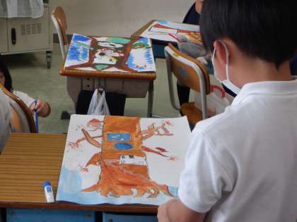 絵具やクレヨンなどを選びながら、イメージに合った表現を追究しています。