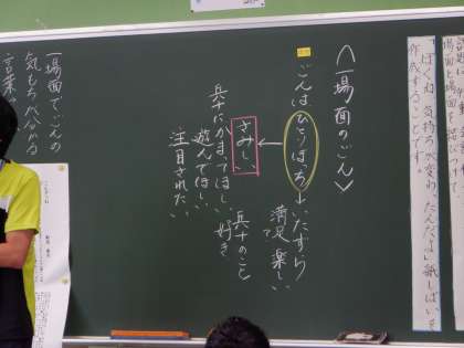 4年3組 国語 ごんぎつね 5 公開日 2023/09/21 更新日 2023/09/21 4年 第1場面でのごんについて、読み取ったことを出し合いました。各自の読み取りのつながりがよくわかるように、整理して板書しています。