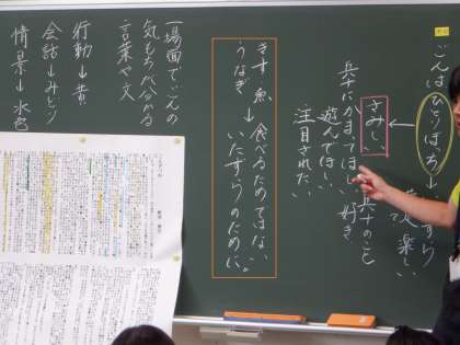 兵十がとった魚を「びく」(魚を入れるかご)から取り出したのは、自分が食べたいからではなく、いたずらのためだということを、叙述に基づいて読み取りました。