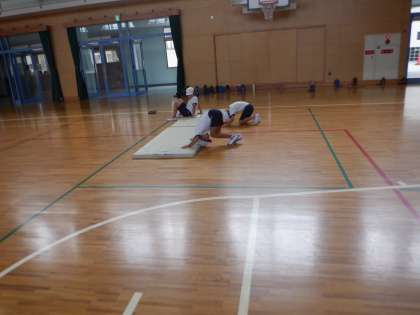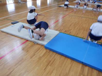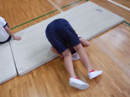 そのまま後転になっている人もいます。感覚づくりのの動きが、技につながっている証拠です。