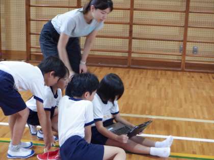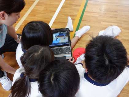 3年3組 体育 後転 5 公開日 2023/09/22 更新日 2023/09/22 3年 自分の動きの動画を見て原因を探っています。まっすぐ回れていない時には、左右どちらか一方の手(腕)が曲がってしまい、マットを強く押せていないことがわかりました。