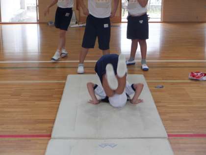 少し体が傾いていますが、きれいに両手でマットを押しています。うまくなりました。