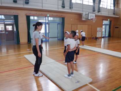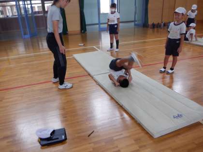 3年3組 体育 後転 9 公開日 2023/09/22 更新日 2023/09/22 3年 先生の言葉かけは、回った本人だけではなく、その後のグループでの教え合いがうまく進むためのヒントになるようにしています。