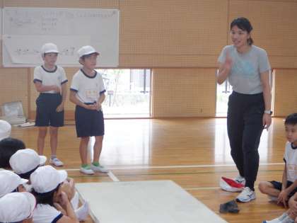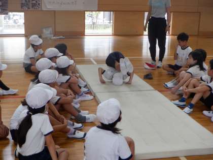 この時間の学習でめあてが達成された人の動きをみんなで見ました。みんなでうまくなっていきましょう。