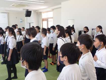 5年生 連合音楽会に向けて 公開日 2023/10/10 更新日 2023/10/10 5年 連合音楽会に向けて,5年生が休み時間に練習をしていました。 5年生が演奏する曲は,NHK全国音楽コンクールの課題曲にもなった「優しい風」という曲です。音楽に合わせてリズムをとりながら歌う人や,大きな口を開けて歌詞をはっきり伝えようとする人など,それぞれが課題意識をもって取り組んでいました。 本番までさらにレベルアップできるように頑張ってほしいです。
