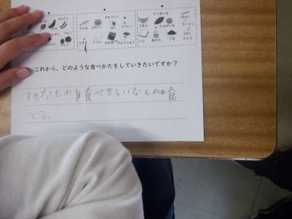 学習をふりかえって、今後どのように食べるのかについても考えました。バランスよく食べてください。