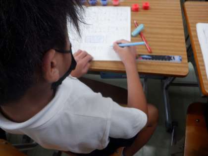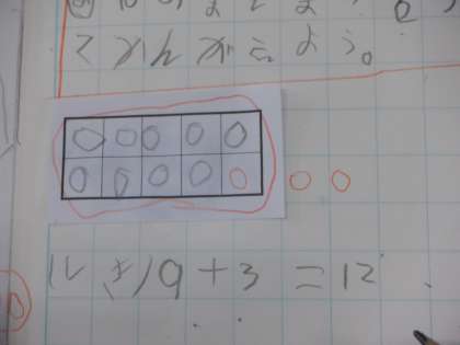 つくった10のまとまりを、赤鉛筆で囲んでいます。わかりやすいですね。