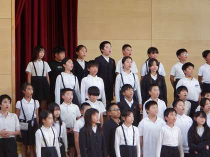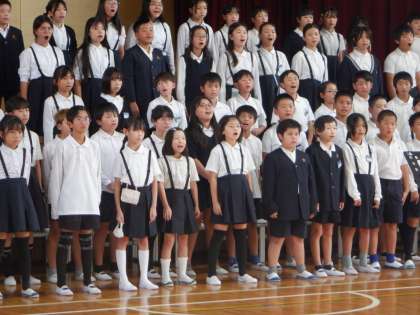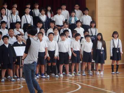 連合音楽会をめざして練習中の5年生です。今日から5年生全員がそろって体育館で練習を始めました。