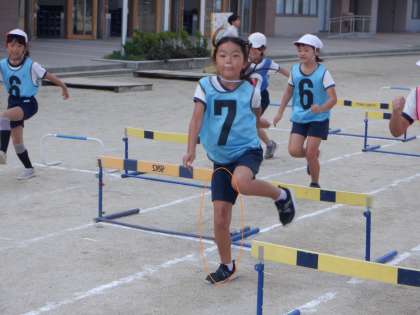 3年4組 体育 小型ハードル走 8 公開日 2023/10/17 更新日 2023/10/17 3年 この人は右足が必ず前になります。このリズムをつかめるハードル間の距離は、人によって違います。次の時間は、それを見つけていきましょう。