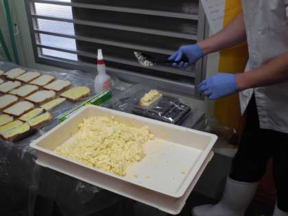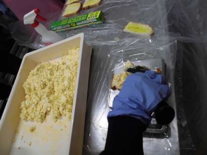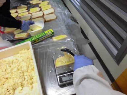 売り物になる製品を作る時と同じように、全体の重さをはかりで測って作りました。