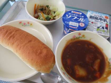 給食のシチューは、じっくりと炊いているのでとてもコクがあっておいしいです。