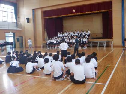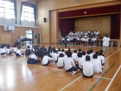 連合音楽会をめざしている5年生の練習の様子です。今日は2クラスずつ歌う・聴くを交替して練習しました。