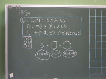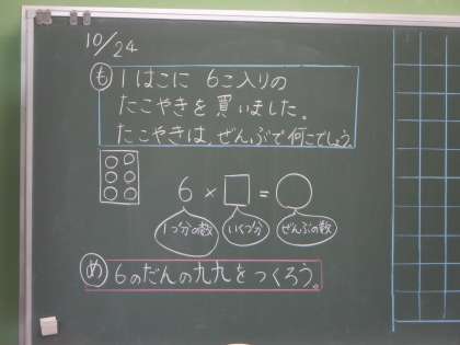 今日のめあてを確かめ、ノートに6の段の九九を書いていきます。