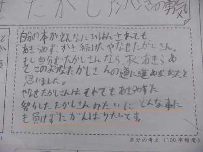 「どんなことにも負けずにがんばりたい」という思いを持ちました。すぐに実践に移していってください。