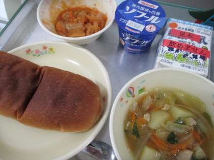 今日は、堺市産の新鮮な「大阪しろな」を使った野菜スープでした。