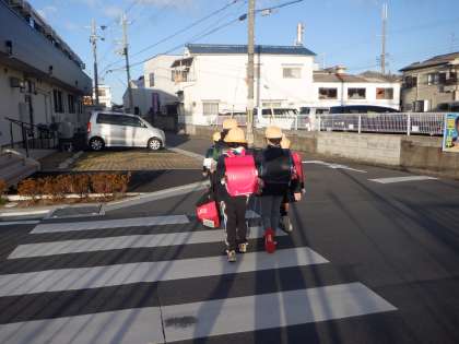 今朝の登校の様子です。風もなく比較的暖かい穏やかな朝です。