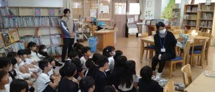 図書の時間には司書の先生による読み聞かせを行っています