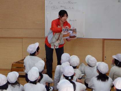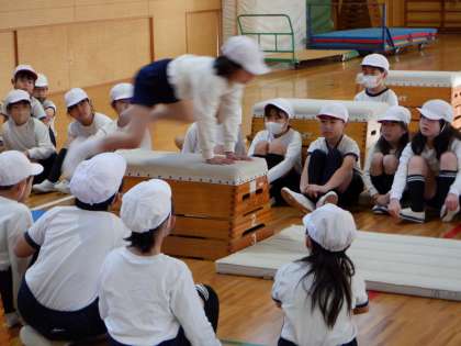写真や、お手本になる動きを見ながら、今日の学習のポイントを確かめています。