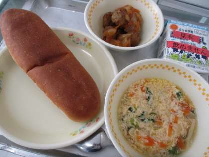 今日は、子どもたちにも人気のあるタンホータンでした。タンは「卵」ホーは「花」タンは「スープ」という意味です。卵が花のようにひろがったスープをタンホータンと言います。昼休みに長縄大会を控えていた2年生の子どもたちは、給食をもりもり食べて「長縄、いっぱい飛ぶぞー!」と気合十分の様子でした。