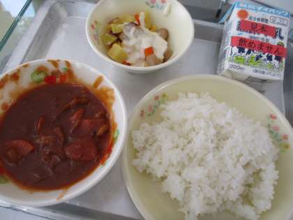 子どもたちも「おうちで食べるのとなんか味が違う。給食のハヤシライスおいしいな〜」とおいしさの違いに気づきながら今日もしっかりと食べていました。