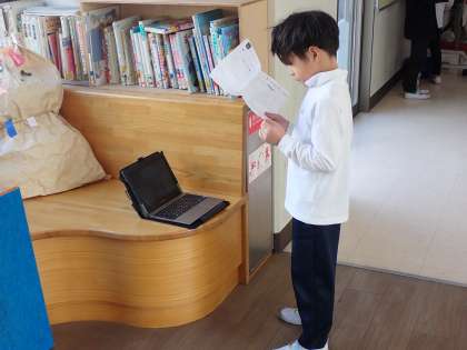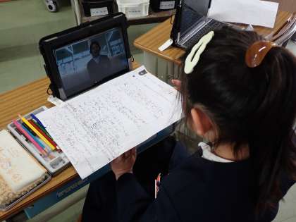 楽しかったよ2年生の学習です。タブレットを使って自分が発表している姿を撮影しています。動画を見てよかったところや改善点を見つけています。客観的に自分を見ることで更に発表のレベルが上がりそうですね。本番が楽しみです。