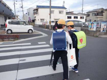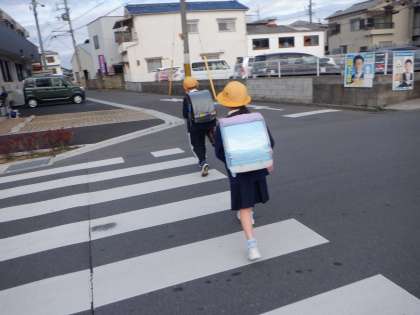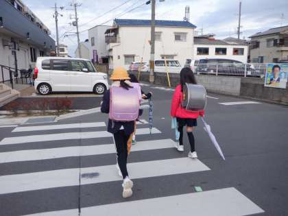 今朝の登校の様子です。今日もこの時期にしては暖かい朝です。