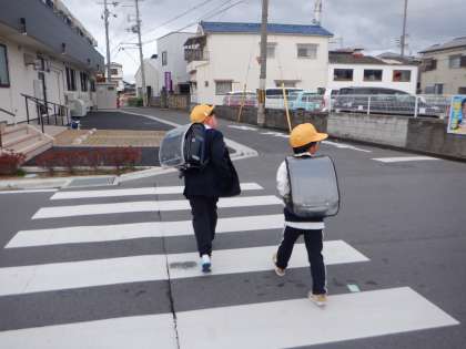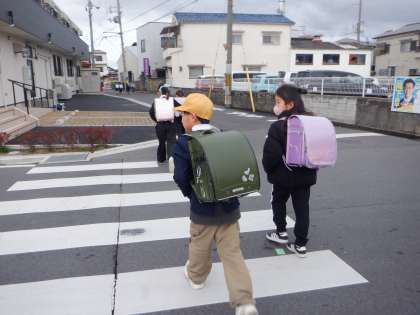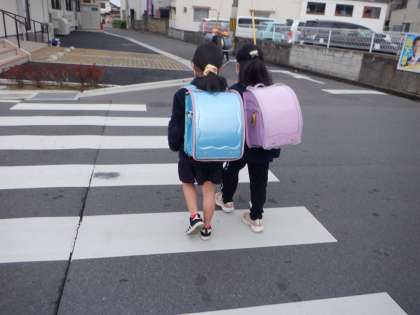今朝の登校の様子です。暖かかった昨日と違って、風も強く、寒く感じます。