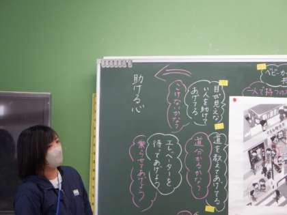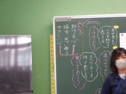 住みよい町にするためにたいせつなのはどんな心なのか、考えを出し合いました。