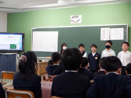 3年1・2組の様子です。いろいろな教科で学んできたことを発表しています。