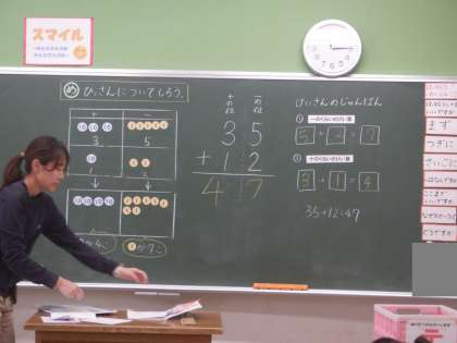 2年算数の学習です。ひっ算の仕組みについて考えています。