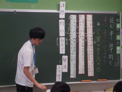 5年1組 国語 3 公開日 2024/04/18 更新日 2024/04/18 5年 単元の学習全体について、「課題」を知ったうえで自分の「問い」をもち、「自分で」(仲間や先生とも)「解決」に向けて学習を進め、最後には一連の学習について「ふりかえり」を行う という、大まかな流れが示されました。これは、4年生の時から、何度か経験していますね。