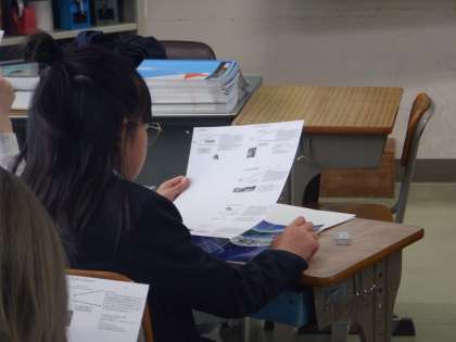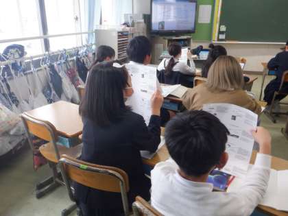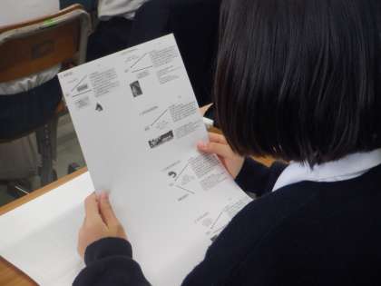 先生から、自分たちで書いていく「日記」のモデルが配られました。真剣に読んでいます。