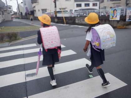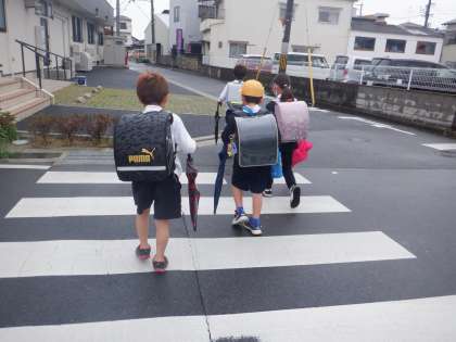 今朝の登校の様子です。雨が降ったりやんだりのすっきりしない天気です。