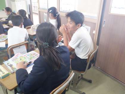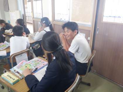 楽しそうに英語で会話をしています。
