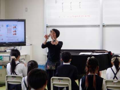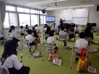 4年4組 音楽 1 公開日 2024/04/24 更新日 2024/04/24 4年 4年音楽の学習です。リコーダーで高い方の「ミ」「ファ」「ソ」の音を出します。親指で押さえる下の穴に少しすき間をあける「サミング」というテクニックが必要です。