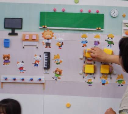 子ども用の机も4脚あります。たぬきの「4匹」も、机の「4脚」も、同じ「4」という数字で表します。
