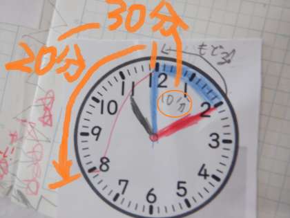 何分たったのかがわかりやすいように、11時ちょうどまで10分もどし、そこからさらに20分もどす という考え方です。