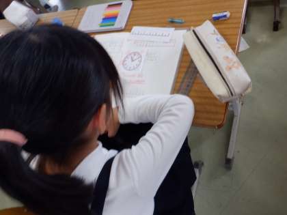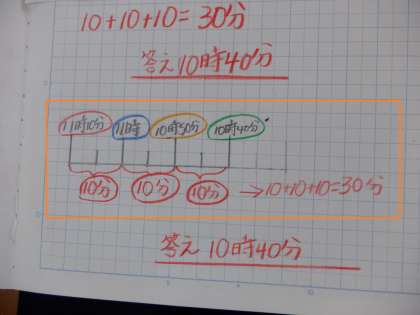 学習のはじめに「時計図と数直線をつなげてみたい」と考えていたことを、みごとにやり遂げました。
