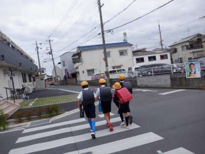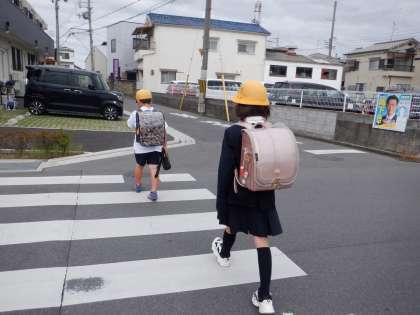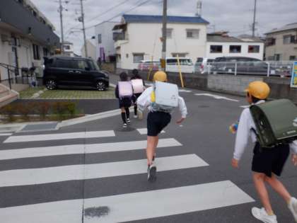 今朝の登校の様子です。日差しもなく、風も強くて寒い朝です。