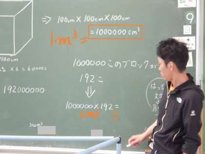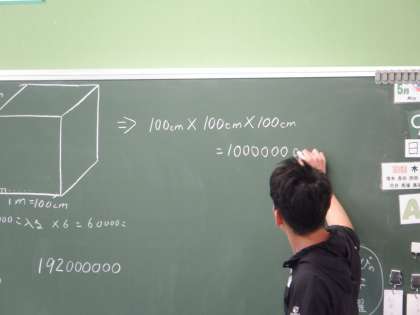 5年4組 算数 5 公開日 2024/05/09 更新日 2024/05/09 5年 これを計算すると、1立方mは1立方cmが100万個になることがわかりました。つまり1立方m=100万立方cmということです。