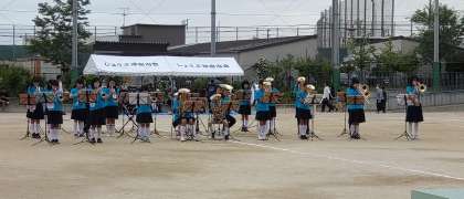 地域体育大会のオープニングを飾るのは本校音楽隊の皆さんです